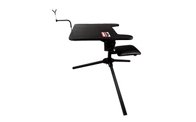 Birchwood Casey Swivel Action Shooting Bench, Seat and Top Swivel 360 Degrees, Extended Armrests, Adjustable Rubber Coated Gun Rest, 2 Shell Gear Pockets, Rated for 300LBS, Black BC-MSB300