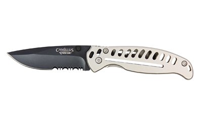Camillus EDC3, Folding Knife, Combo Edge, Silver Stainless Steel Handle, Matte Finish, Black, 3″ Blade Length, 6.75″ Overall Length, AUS-8 Blade Steel, Liner Lock CAM-19166
