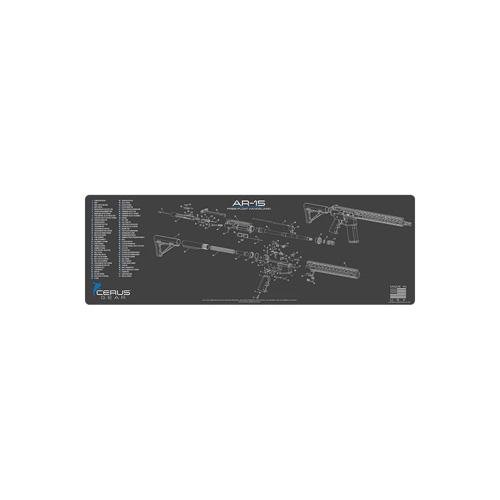 AR-15 FREE FLOAT HANDGUARD SCHEMATIC RIFLE MAT – CHARCOAL GRAY/CERUS BLUE 12″ X 36″