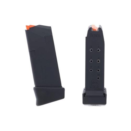 Each GLOCK magazine is constructed from a hardened steel insert encased in high tech polymer to protect the magazine and prevent deformation even when dropped from a great height. The high quality spring and follower ensure reliable feeding from the first round fed by a fully compressed spring down to the last shot. Its double cut magazine body also works with a reversed magazine catch on Gen 4 GLOCK pistol models.