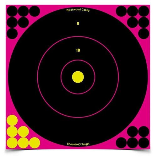 SHOOT N C 12″ BULL’S-EYE PINK REACTIVE TARGETS – 5 TARGETS 120 PASTERS