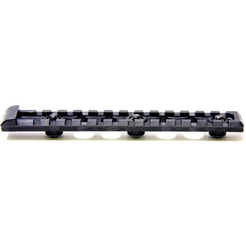 The PM003B is precision molded to meet MIL-STD 1913 Picatinny rail specifications. The rail is manufactured from a proprietary black polymer. Attachment to the rifle or carbine hand guard is by three (3) machine screws into captured nuts with mounting lugs protruding from the backside of the rail. The rail allows attachment of a vertical fore grip flashlight laser and/or bipod. No permanent modification required includes all mounting hardware. Made of USA.