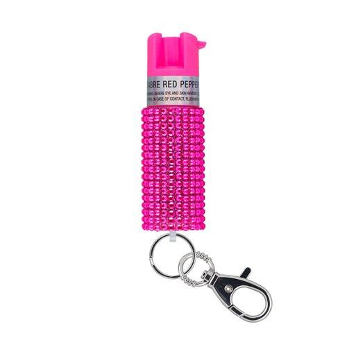 Upgrade your style while staying safe with easy access to protection with the SABRE Jeweled Pepper Spray with Snap Clip and Snap Clip. The canister contains 25 bursts (5x the competition) for protection against multiple threats from a safe distance. With an industry-exclusive HPLC laboratory only SABRE guarantees its maximum strength formulation in every canister to help give you peace of mind certainty reliability and safety when you need it most. The twist lock safety prevents an accidental discharge from occurring in your purse or bag. Snap Clip allows for quick and secure attachment onto keys and bags for easy access to your protection when you need it most. Show off your style with the sparkly jeweled monochromatic design in black silver or lavender. SABRE Pepper Spray is made in USA.