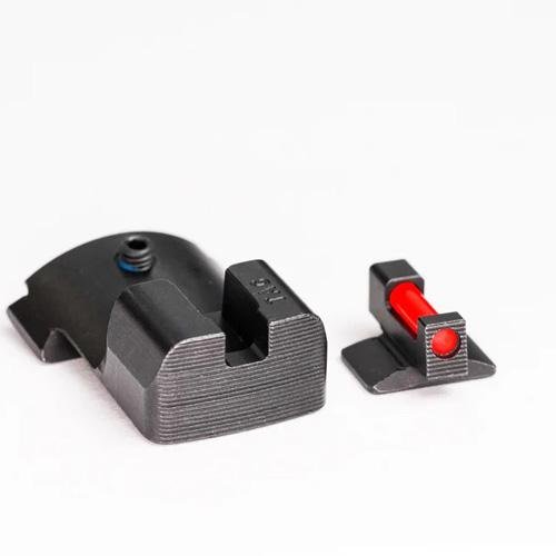 Introducing TAG TSH sights where innovation meets versatility. Our sights seamlessly combine the brilliance of patented FiberLok technology in the front sight with the simplicity of a plain rear. This unique hybrid design not only ensures fast target acquisition but also delivers spectacular contrast. Equipped with our industry-leading FiberLok front sight TAG TSH sights empower you with the freedom to customize your shooting experience by effortlessly switching out fiber colors using a simple hex key. The result? An array of optional colors that make your front sight truly stand out providing optimal visibility in any lighting conditions. The HIGH-TEMP CNC machined fiber is secured by steel on the front and back side to ensure longevity of the fiber.Crafted for precision and durability all TAG Hybrid sights undergo a QPQ Nitride finish and are meticulously manufactured using CNC technology from billet steel. The anti-glare plain rear sight enhances your focus on the target creating a harmonious balance between form and function.